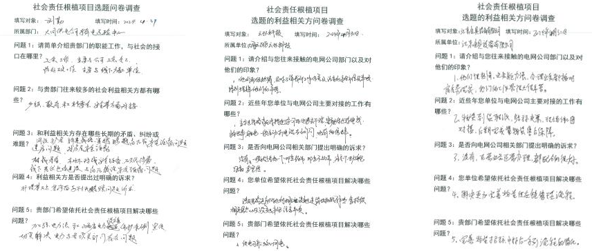 按照差異化需求進行分解調(diào)研,對內(nèi)以調(diào)研問卷形式對14名工作負責(zé)人、40名班組成員進行調(diào)研,尋找關(guān)鍵癥結(jié)。對外現(xiàn)場走訪利益相關(guān)方20余次,發(fā)出問卷80份,收回有效問卷76份,調(diào)研結(jié)果統(tǒng)計得到施工管控難度大、防外破工作威懾力不足、電力專業(yè)理論支持不夠等問題。(調(diào)研佐證記錄、調(diào)研總結(jié)分析報告詳見附件)。